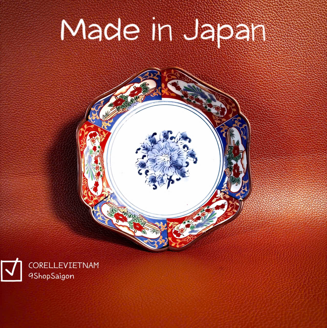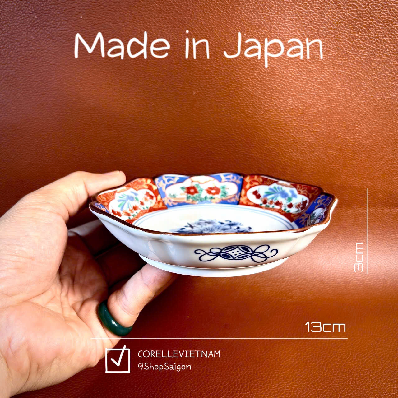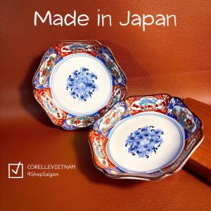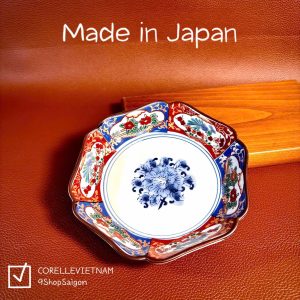 [Hàng Hiếm Japan 100% New] 01 Đĩa Lòng Sâu Cơm Ngũ Sắc Vẽ Tay Lục Giác Mẫu Đơn 13cm