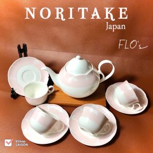NORITAKE 100%New – FLO’s – Bộ Ấm + 04 Set Trà Tone Hồng Hoa Phấn.